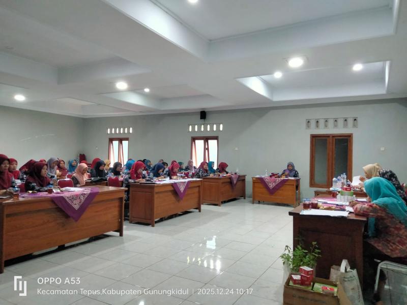 Giripanggung(24/12/2025) Pemerintah Kalurahan Giripanggung mengadakan rapat koordinasi rutin Kader Posyandu pada Rabu, 24 Desember 2025, yang berlangsung di Balai Kalurahan Giripanggung. Rapat tersebut dihadiri oleh petugas dari UPT Puskesmas Tepus II, Pamong, serta Kader Posyandu dari setiap Padukuhan yang ada di wilayah Kalurahan Giripanggung. Kegiatan ini bertujuan untuk mempererat kerja sama antara pemerintah, petugas kesehatan, dan masyarakat dalam meningkatkan pelayanan kesehatan di tingkat Posyandu.