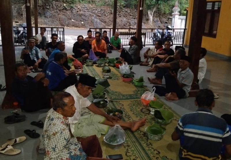 Setelah doa bersama selesai, warga yang hadir makan bersama makanan yang dibawa dari rumah masing-masing. Makanan yang dibawa beragam, mulai dari makanan ringan hingga hidangan utama, yang kemudian disantap bersama-sama.