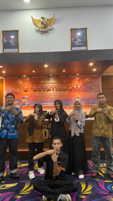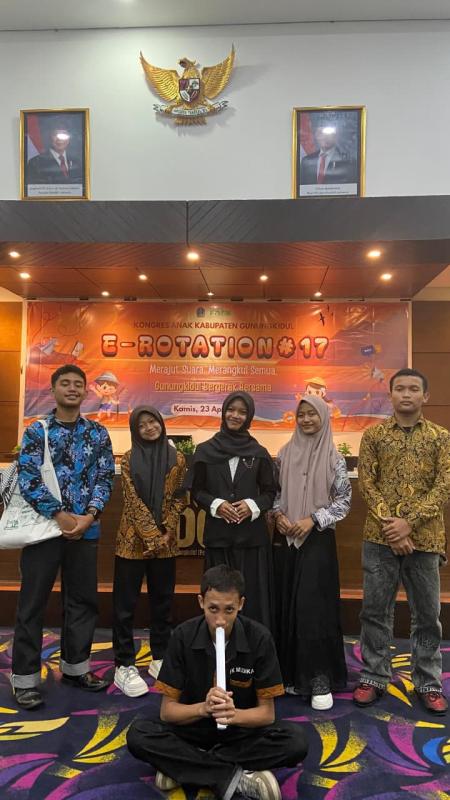 Gunungkidul (23/04/2026) Forum Anak Kalurahan Giripanggung (Forsa Giri) mengikuti kegiatan E-Rotation yang diselenggarakan oleh Forum Anak Kabupaten Gunungkidul pada Kamis, 23 April 2026 di Ruang Rapat Bank Daerah Gunungkidul (BDG). Kegiatan ini merupakan bagian dari upaya meningkatkan partisipasi anak dalam berdiskusi, menyampaikan aspirasi, serta merumuskan Suara Anak Kabupaten Gunungkidul Tahun 2026.