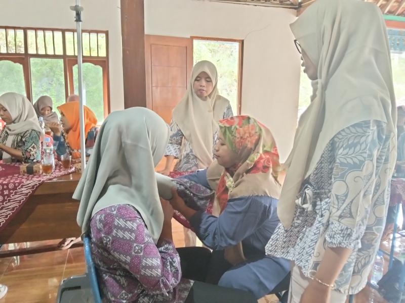 Selain penyampaian materi, petugas dari UPT Puskesmas Tepus II juga memberikan praktik langsung kepada peserta mengenai cara pemeriksaan sederhana seperti pengukuran tekanan darah, berat badan, lingkar perut, dan pemeriksaan gula darah. Melalui pelatihan ini, peserta diharapkan mampu mengenali tanda-tanda awal penyakit sehingga dapat dilakukan penanganan secara lebih cepat dan tepat.